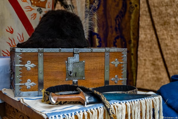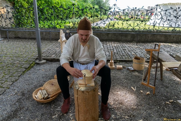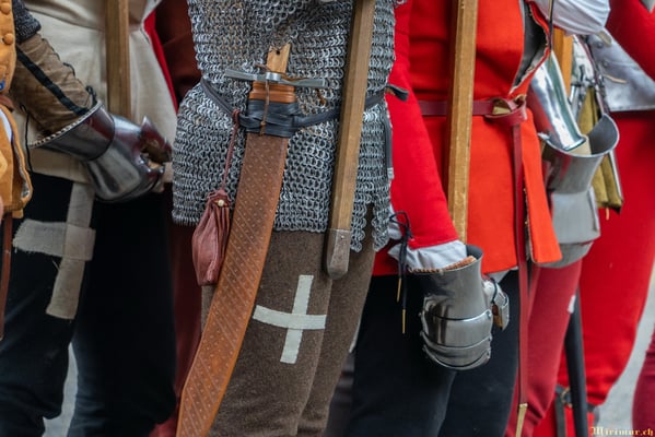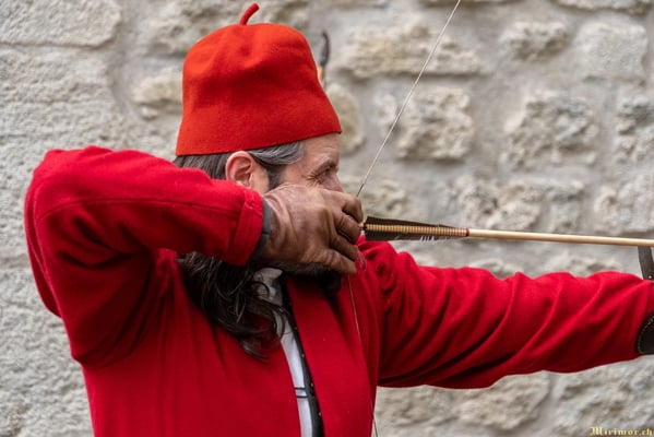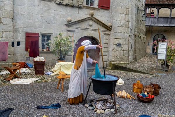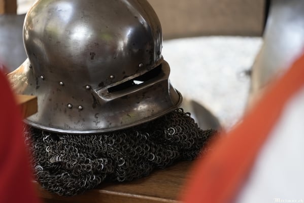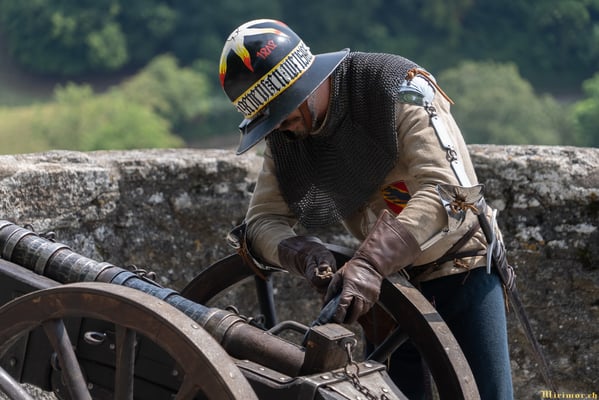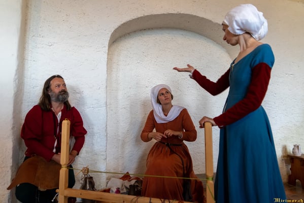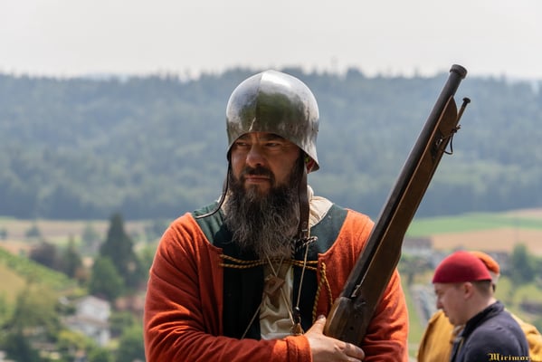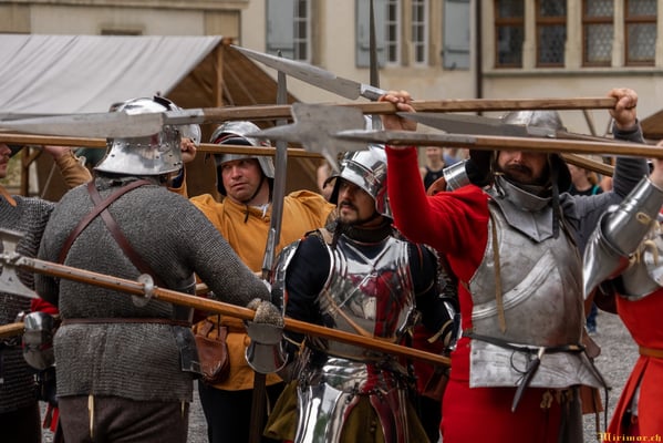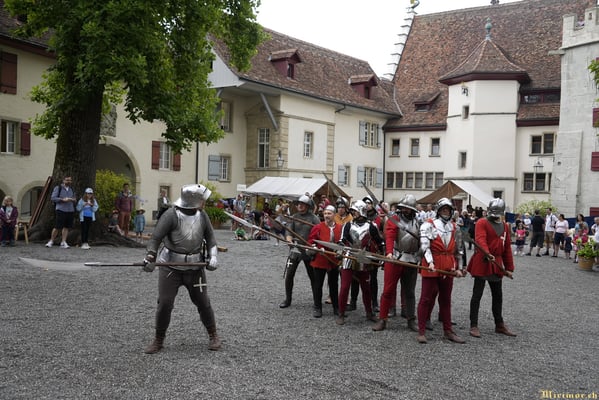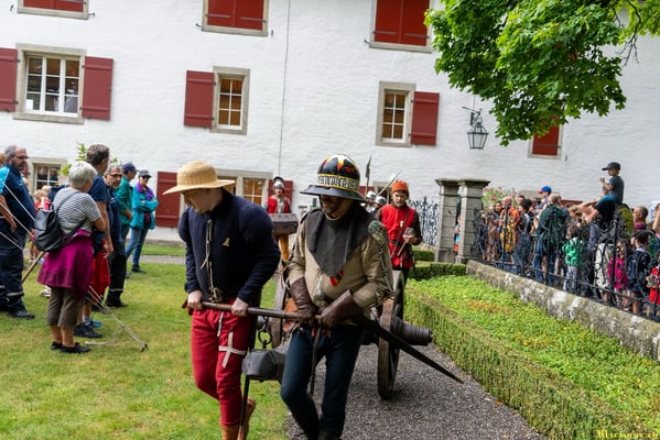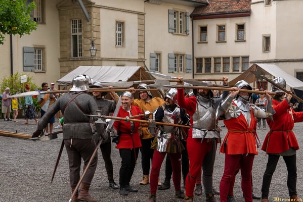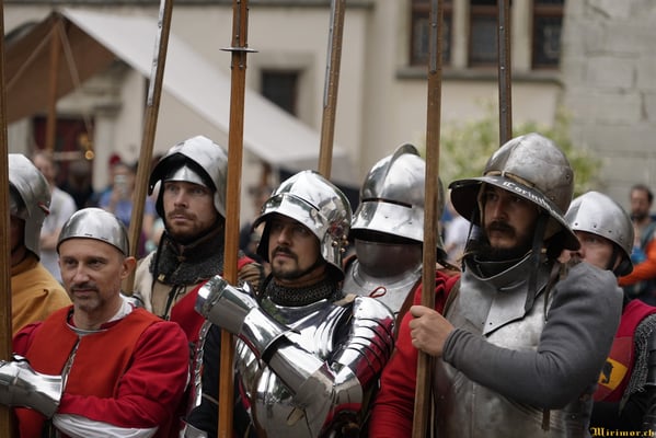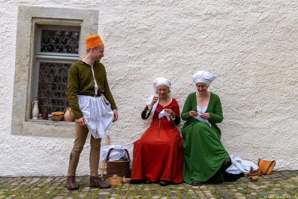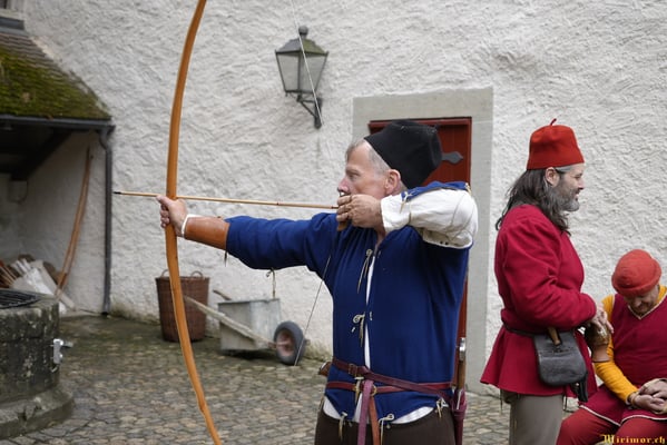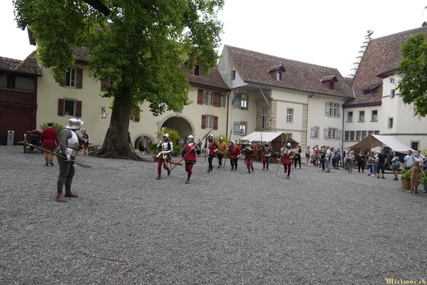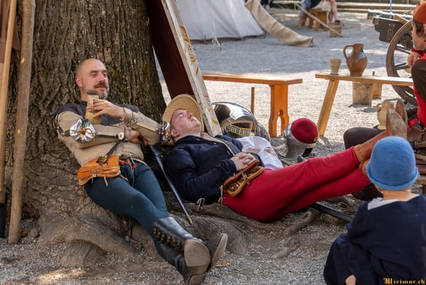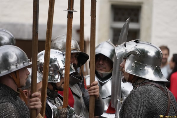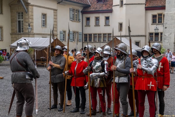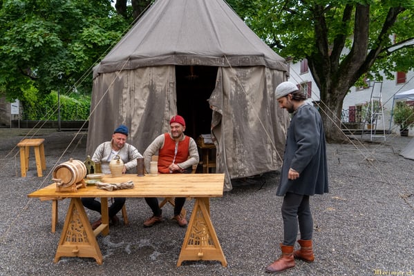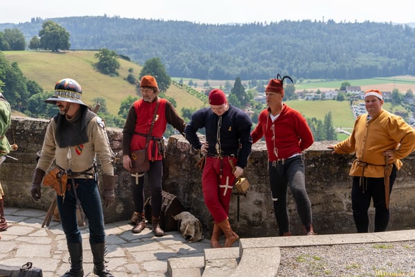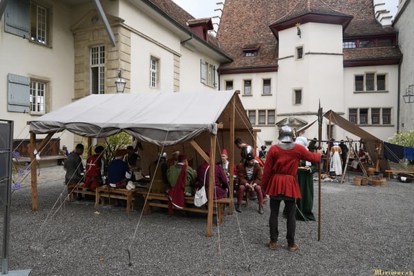 Die renommierte Mittelalter-Gruppe Company of St. George stellt den Alltag einer Truppeneinheit nach, die nach dem Sieg über Karl den Kühnen Halt auf Schloss Lenzburg macht.