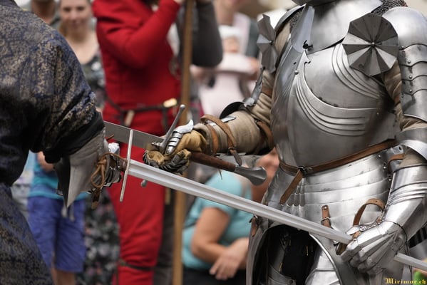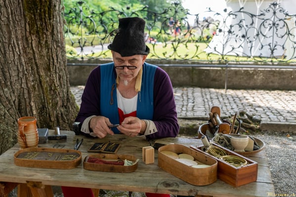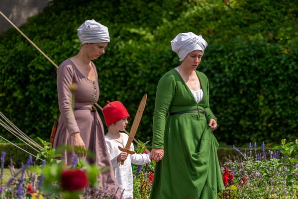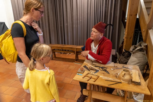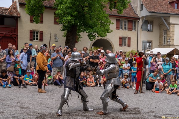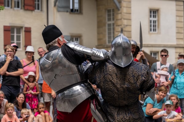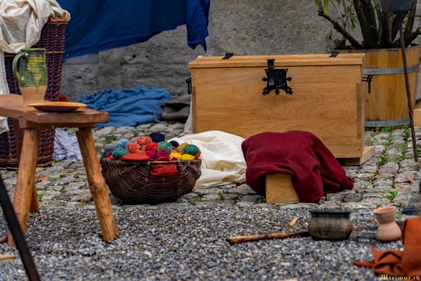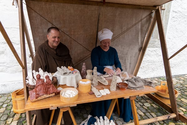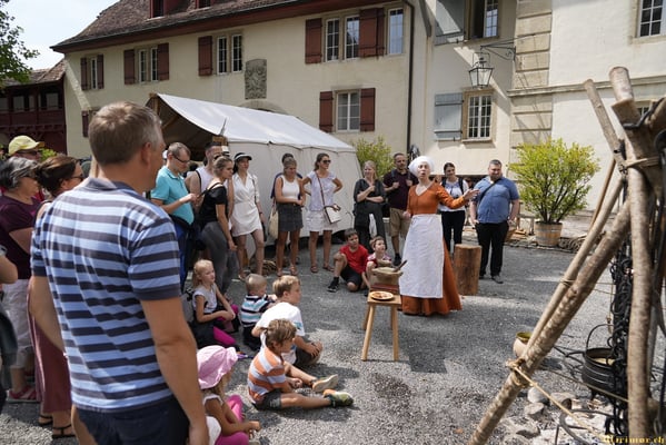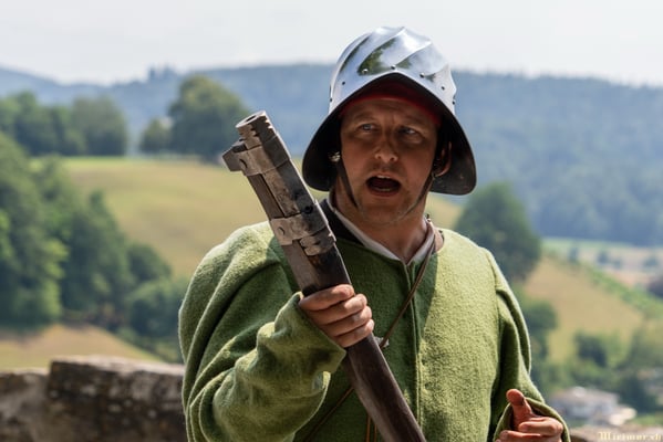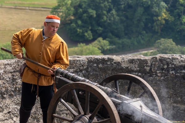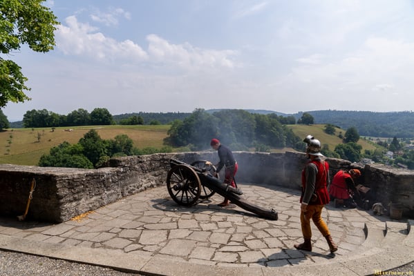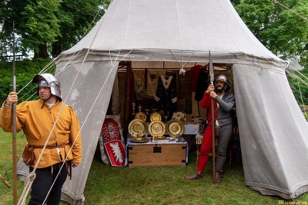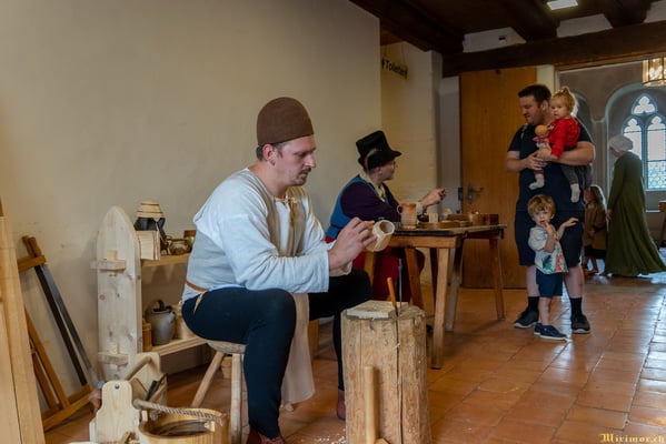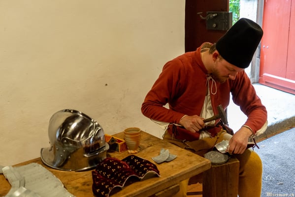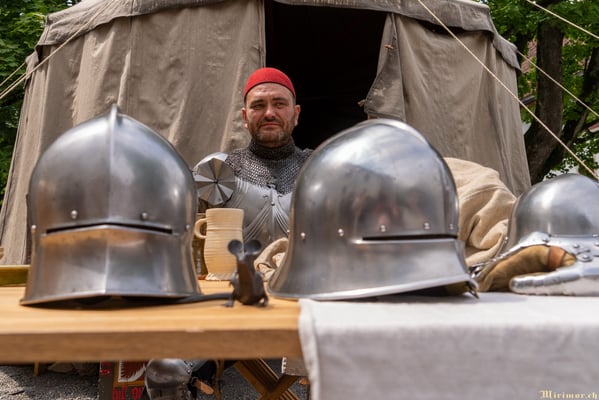 Offiziere und Soldaten schlagen im Hof ihre Zelte auf und lassen das Publikum ins 15. Jahrhundert eintauchen. Es duftet nach mittelalterlichen Speisen, gekocht nach mittelalterlichen Originalrezepten. Handwerkerinnen und Handwerker gehen ihrer Arbeit nach, die Burgbesatzung patrouilliert mit Hellebarden und Kanonen.
