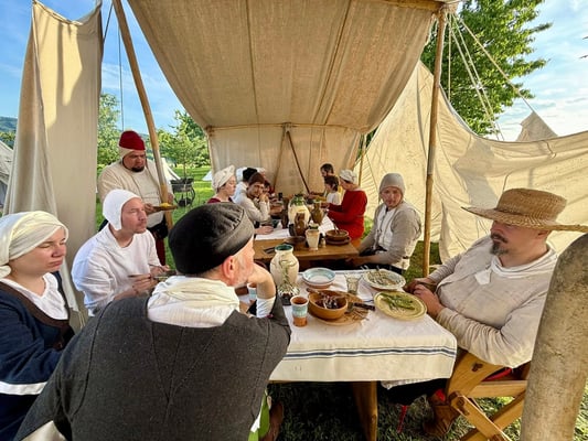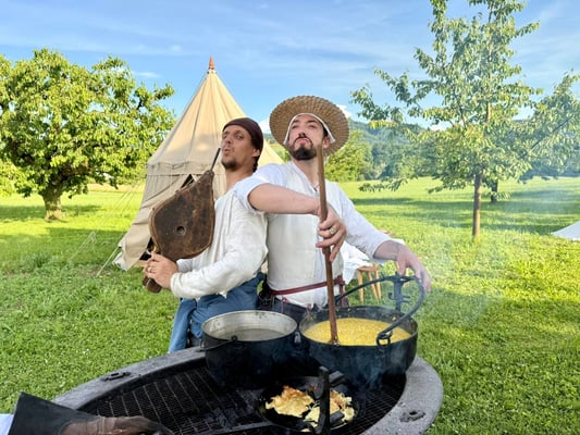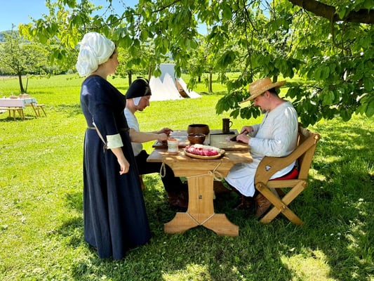Dabei errichten wir z.B. ein Lager, beleben Burgen, feiern gemeinsam Advent, wandern miteinander in Gewandung durchs Jura oder besuchen Mittelalterveranstaltungen.