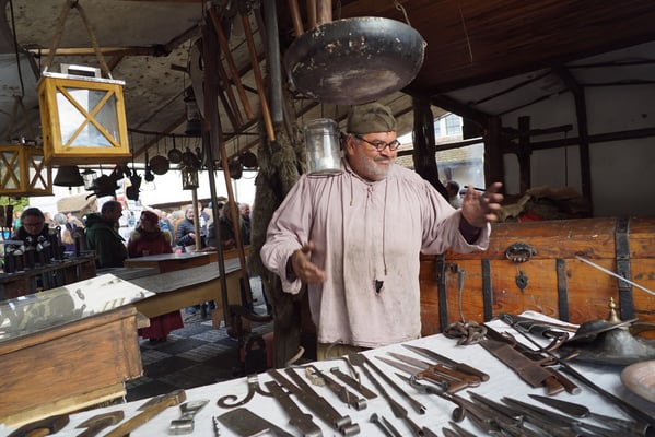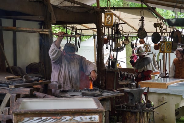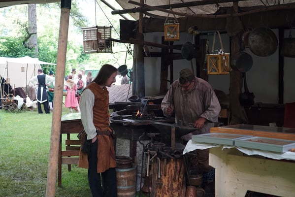 Meine Dienst versuch ich anzubieten, damit das junge Volk sehen mög, was in meiner Junker Tag wohl Recht und Sitte war. Ich versuch das löblich Handwerk des Schwarzschmiedes darzubieten. Dem gemeinen Volke aber auch den hochlöblichen Herren und Damen versuche die Handhabung der angefertigten Waren aber auch der feilgebotenen Waffen, Messer und Gebrauchsgegenstände darzulegen. Falls jemand selbst Hand anlegen möcht, werd ich dies sicher nicht versagen.