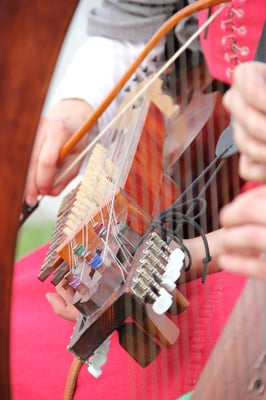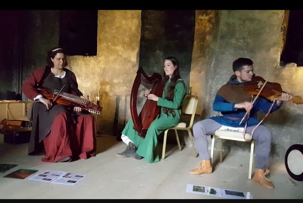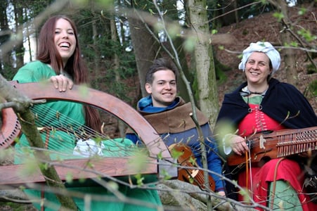 Wir spielen Mittelalter- und Folkmusik auf historischen Instrumenten. Die selten gehörte Kombination von Cláirseach (irische Metallsaitenharfe), Nyckelharpa und Fiedel, gespickt mit temporeicher Perkussion, erzeugt einen zauberhaften, mitreissenden Klang.